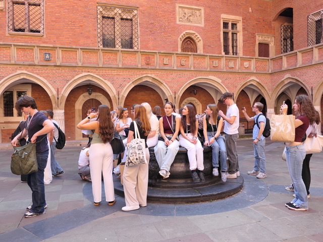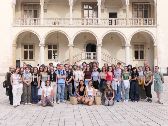 In der Woche vom 09. September bis zum 16. September hatten wir, eine Gruppe von 20 Schülerinnen und Schülern der Stufe 11 des MGL, die Gelegenheit, an einem Austausch mit unserer Partnerschule in Krakau teilzunehmen. Begleitet wurde die Reise von Frau Deppe und Herrn Baumann. Die gemeinsame Anreise mit dem Zug und dem Flugzeug war leider nicht das Highlight der Woche (die Deutsche Bahn mal wieder…), aber nach einer herzlichen Begrüßung durch unsere Austauschpartner startete unser Programm mit einem kleinem Essen, einem traditionellen Tanz und ein paar Integrationsspielen zum Kennenlernen. Nach der anstrengenden Anreise gingen dann alle nach Hause, um den Abend in den Familien zu verbringen.