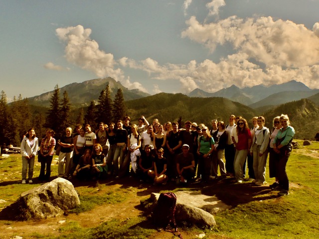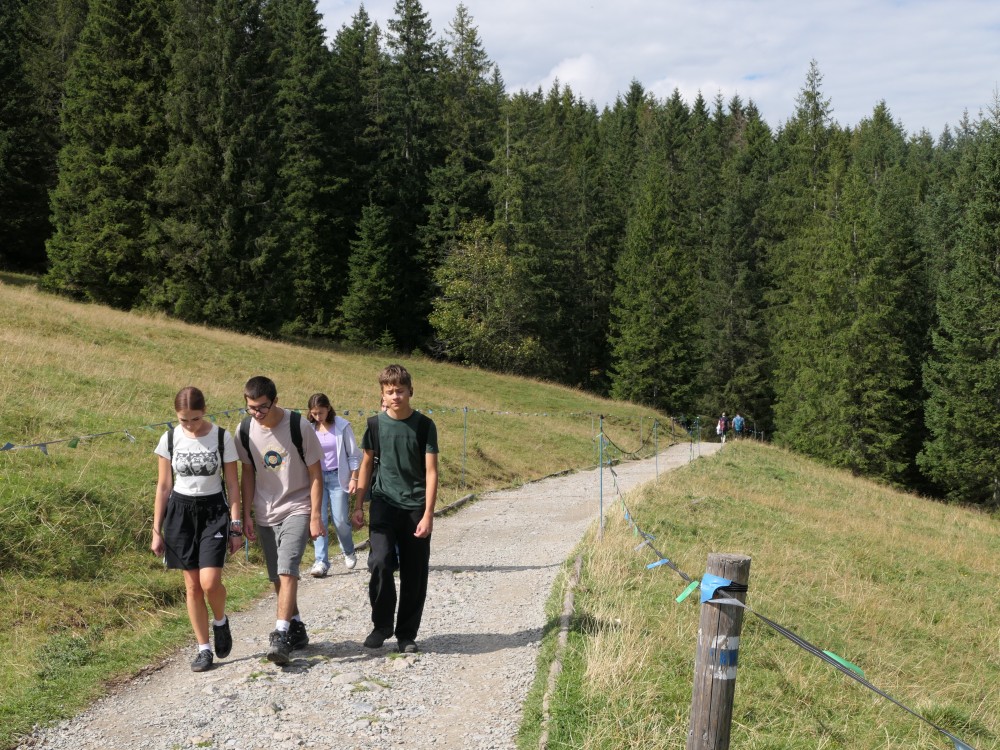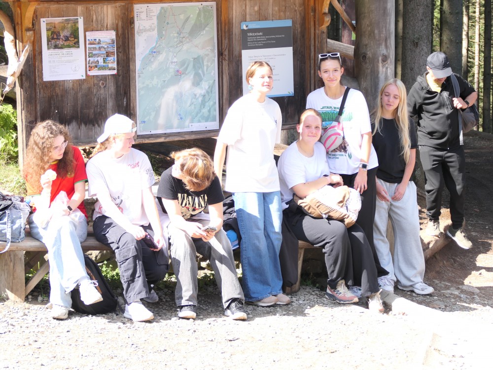 Gleich am nächsten Morgen ging es mit dem Unterricht in der Schule und Präsentationen über Gerhard Richter und Zakopane los. Danach machten wir uns auf den Weg in die Krakauer Innenstadt, wo wir zuerst etwas Freizeit hatten und dann eine Stadtführung bekamen. Wir bestaunten die Altstadt, den Marktplatz mit der Bazylika Mariacka und die Galeria Krakowska. Auch am Nachmittag blieb Zeit, mit unseren Austauschpartnern durch die Stadt zu bummeln – und natürlich sękacz (Baumstriezel) zu probieren. Am Donnerstag verließen wir die Stadt und es ging für uns nach Zakopane, in die Nähe der Tatra-Berge. Dort durften wir uns die Stadt etwas anschauen und gegebenenfalls vergessene Badekleidung besorgen, bevor wir dann in die Therme fuhren. Nach ein paar Stunden Planschen und Testen der Wasserrutschen, fuhren wir zurück in die Pension, wo es dann typisch polnisch zu Abend gab. Es gab kleine frittierte Kartoffelstückchen, die uns sehr gefallen haben und noch eine Gemüsesuppe. Anschließend gingen einige von uns in einem Nachbargebäude kegeln, während der Rest in der Pension blieb und beispielsweise Billard spielte. Bei einem Spiel Italienisch vs. Französisch ging der Sieg nach einem knappen Finale an das Team Italienisch.