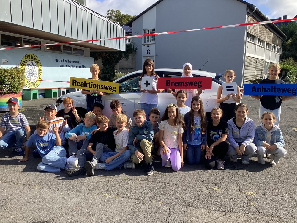 Anfang September war es so weit: Der ADAC kam ans Martinus-Gymnasium, um mit allen Kindern der fünften Klasse den Workshop „Achtung Auto“ zu durchzuführen. Die Frau vom ADAC zeigte uns, wie gefährlich der Straßenverkehr sein kann. Dazu machten wir einige Experimente, die das verdeutlichten. Nicklas und Karl aus der 5d berichten: „Uns hat gefallen, dass wir zwei verschiedene Rennen gemacht haben. Und das Highlight war die Vollbremsung im Auto!“ Janik und Adrian waren ebenfalls davon beeindruckt, die Vollbremsung auf dem Schulhof selbst mitzuerleben: „Es hat Spaß gemacht – das war ein richtiger Nervenkitzel!“ „Seitdem pass‘ ich im Straßenverkehr besser auf“, ergänzt Theo.